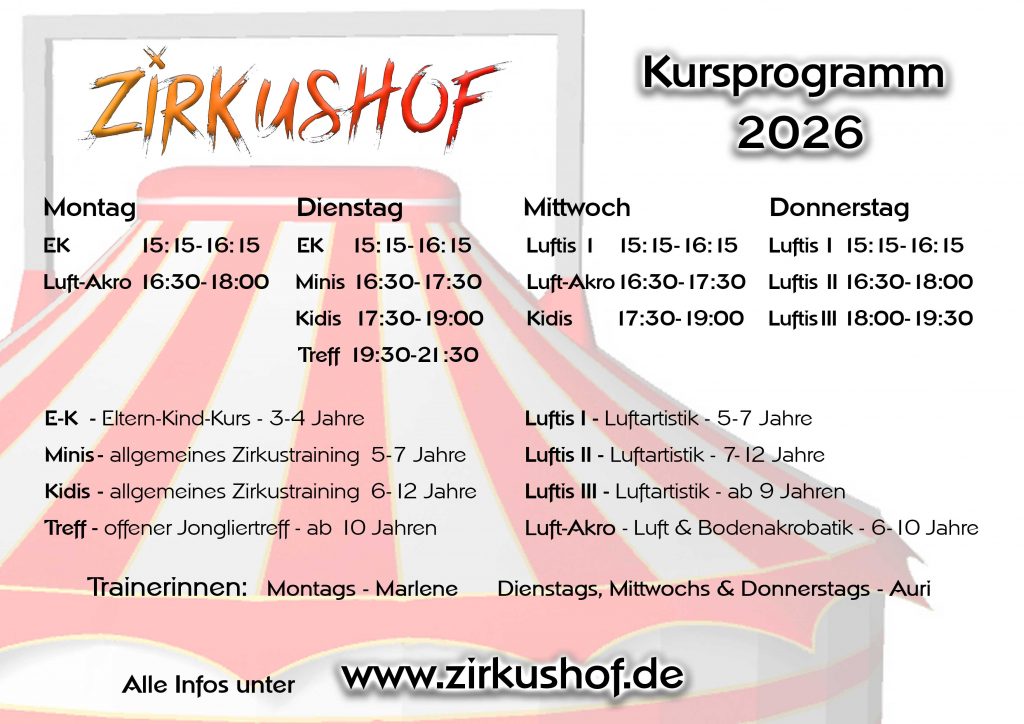 Wir bieten regelmäßige Zirkuskurse für Kinder, Jugendliche und Erwachsene an.